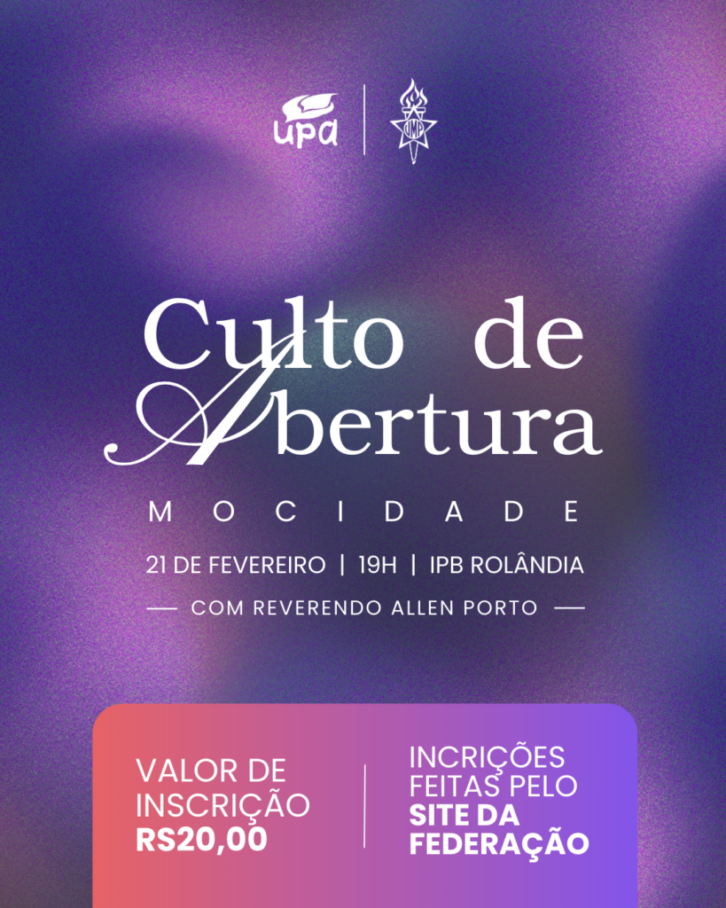 Eventos 2026 Culto de Abertura – 2026 Dias 21 de Fevereiro, na IPB de Rôlandia, estaremos juntos no nosso CULTO DE ABERTURA das ATIVIDADES da MOCIDADE PNNP!!! Ver mais